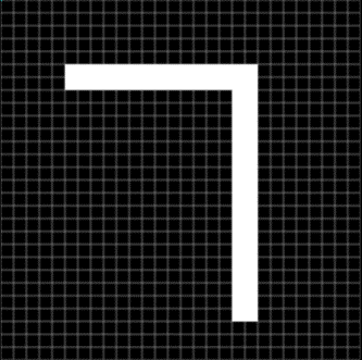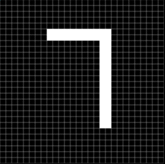 dwa odcinki, poziomy i pionowy, pierwszy odcinek jest poziomy, a na jego końcu pod kątem 90 stopni styka się z odcinkiem pionowym. Zauważmy, że do opisu znaku wystarczą w tym przypadku praktycznie 4 informacje , a nie informacja o 784 punktach w 255 odcieniach szarości. Co więcej tak zapisana informacja jest niezależna od wielkości znaku.